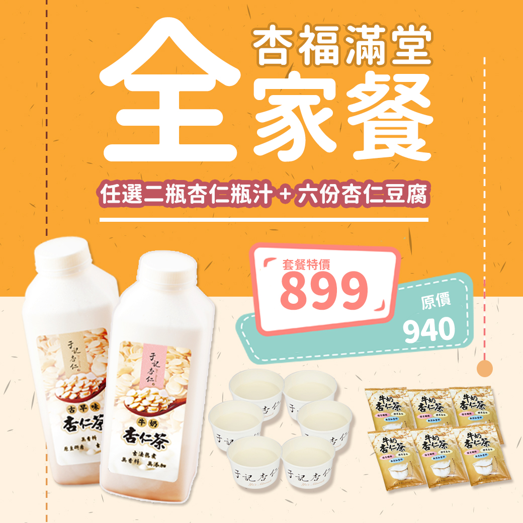 杏福滿堂 全家餐 (任選二瓶杏仁瓶汁 + 六份杏仁豆腐) - 宅配
