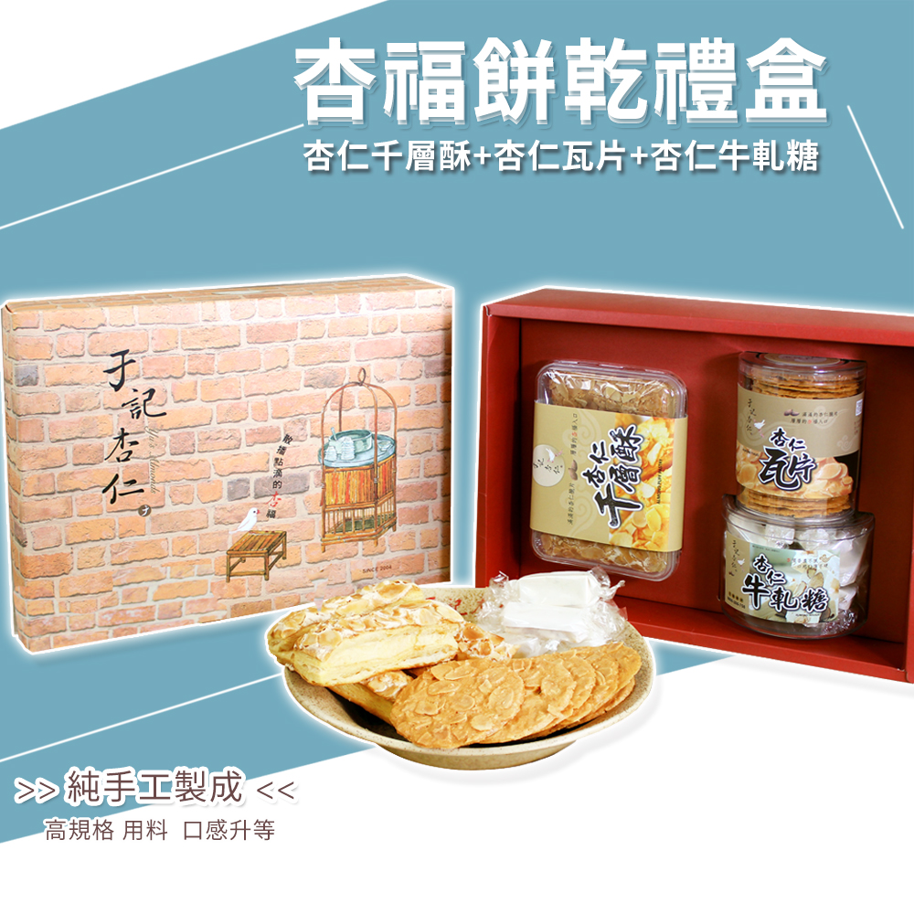 ◇ 杏仁千層酥、杏仁瓦片、杏仁牛軋糖各乙盒。