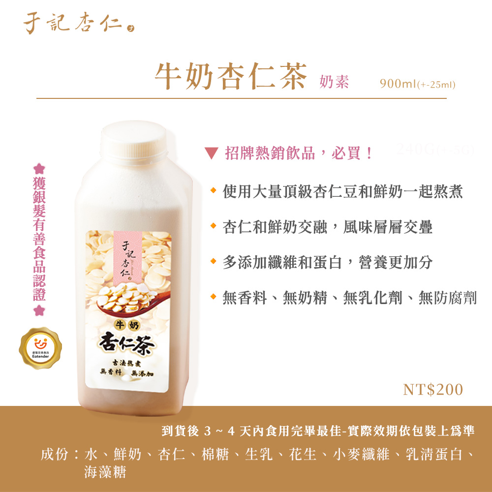 牛奶杏仁茶|奶素|900 ml/ 瓶 - 宅配